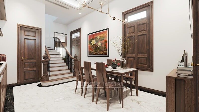 Thiết kế nội thất phòng ăn chung cư phong cách tân cổ điển