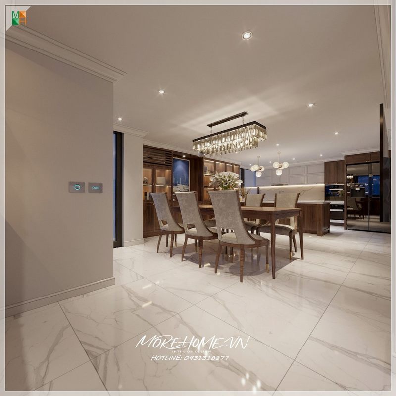 Nội thất phòng ăn chung cư cao cấp ấn tượng và độc đáo với phong cách tân cổ điển