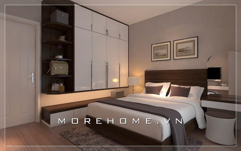 Tủ quần áo gỗ hiện đại được thiết kế âm tường mang lại cho căn phòng thêm phần rộng và thoáng