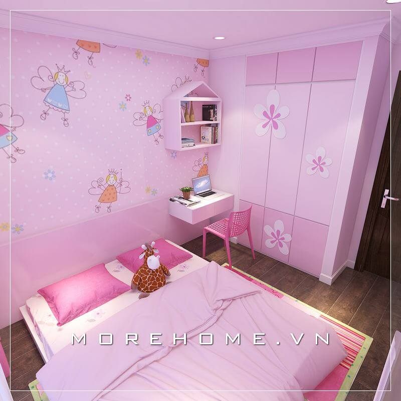 Tủ quần áo bé gái gỗ công nghiệp hiện đại với gam màu hồng chủ đạo tạo nên cảm giác dễ thương và ấn tượng