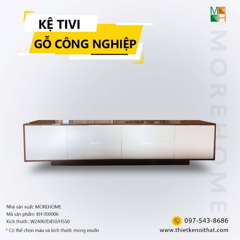 Mẫu kệ tivi bằng gỗ công nghiệp MDF kết hợp Laminate, được thiết kế với 6 ngăn kiểu dáng đơn giản mà thanh lịch, phù hợp với phòng ngủ phong cách hiện đại
