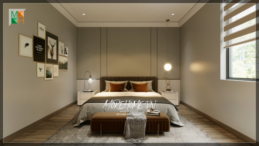Thi công nội thất phòng ngủ master phong cách hiện đại tinh tế cho biệt thự 4 tầng tại Nghệ An