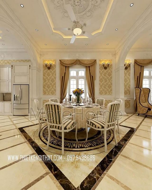 Chúng tôi cung cấp dịch vụ thiết kế nội thất phòng ăn sang trọng, cao cấp với phong cách tân cổ điển cho các loại nhà phố, biệt thự, chung cư.
