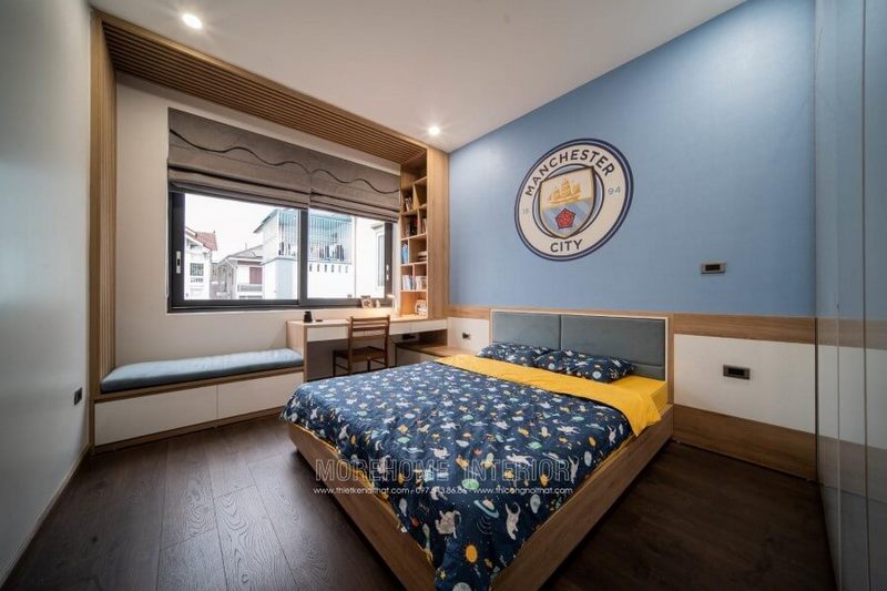 Việc thi công nội thất phòng ngủ hiện đại và đẹp cho biệt thự Vinhomes Riverside Hà Nội đã hoàn thành.